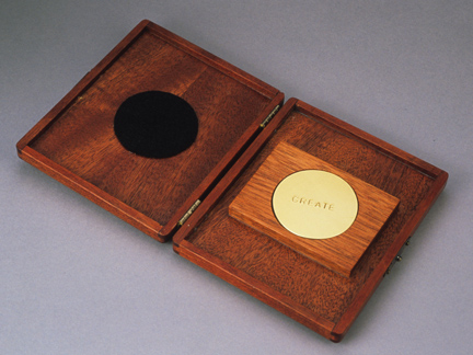 mahogany, brass coin stamped: "create"/"destroy".