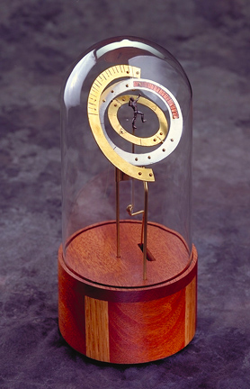 Cosmos Instrument #1 1994 mahogany, glass bell jar, brass, bronze, nickel, copper, spring-wound motor 9” x 4.5 ” x 4.5"